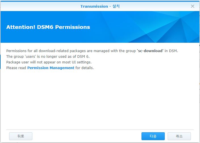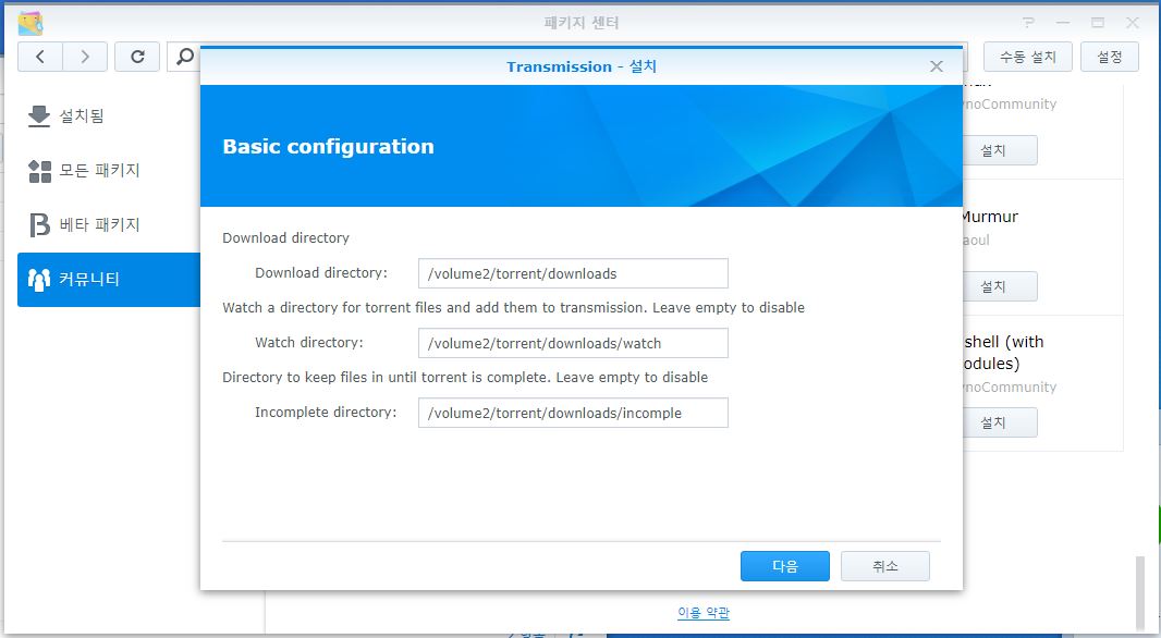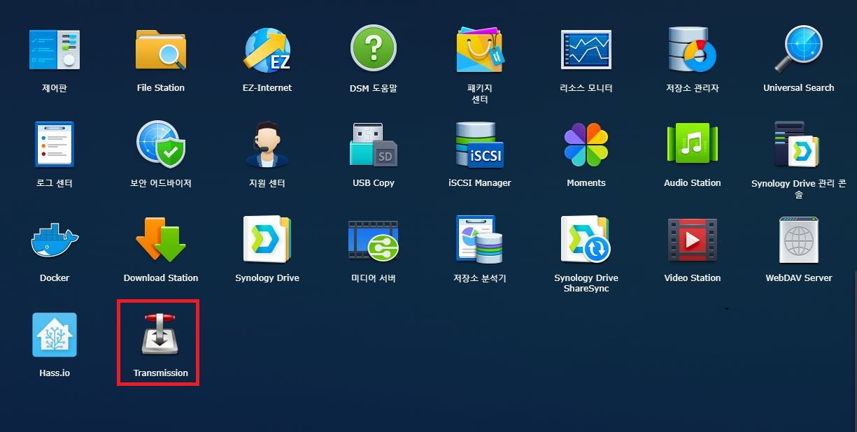 요로코롬 하면 정상적으로 설치가 완료되고 사용이 가능합니다. 패키지센터에 가서 Transmission 실행을 한번 눌러준뒤 사용하시면 됩니다.!